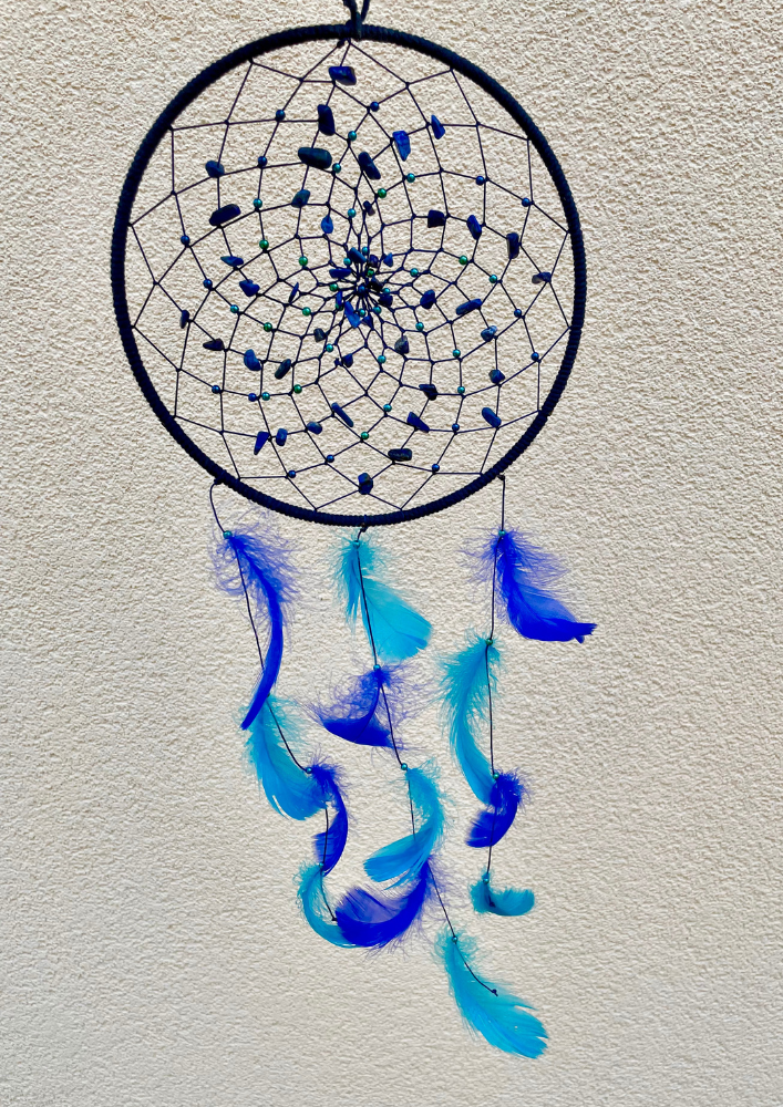Attrape rêve bleue avec lapis-lazuli (fait main)