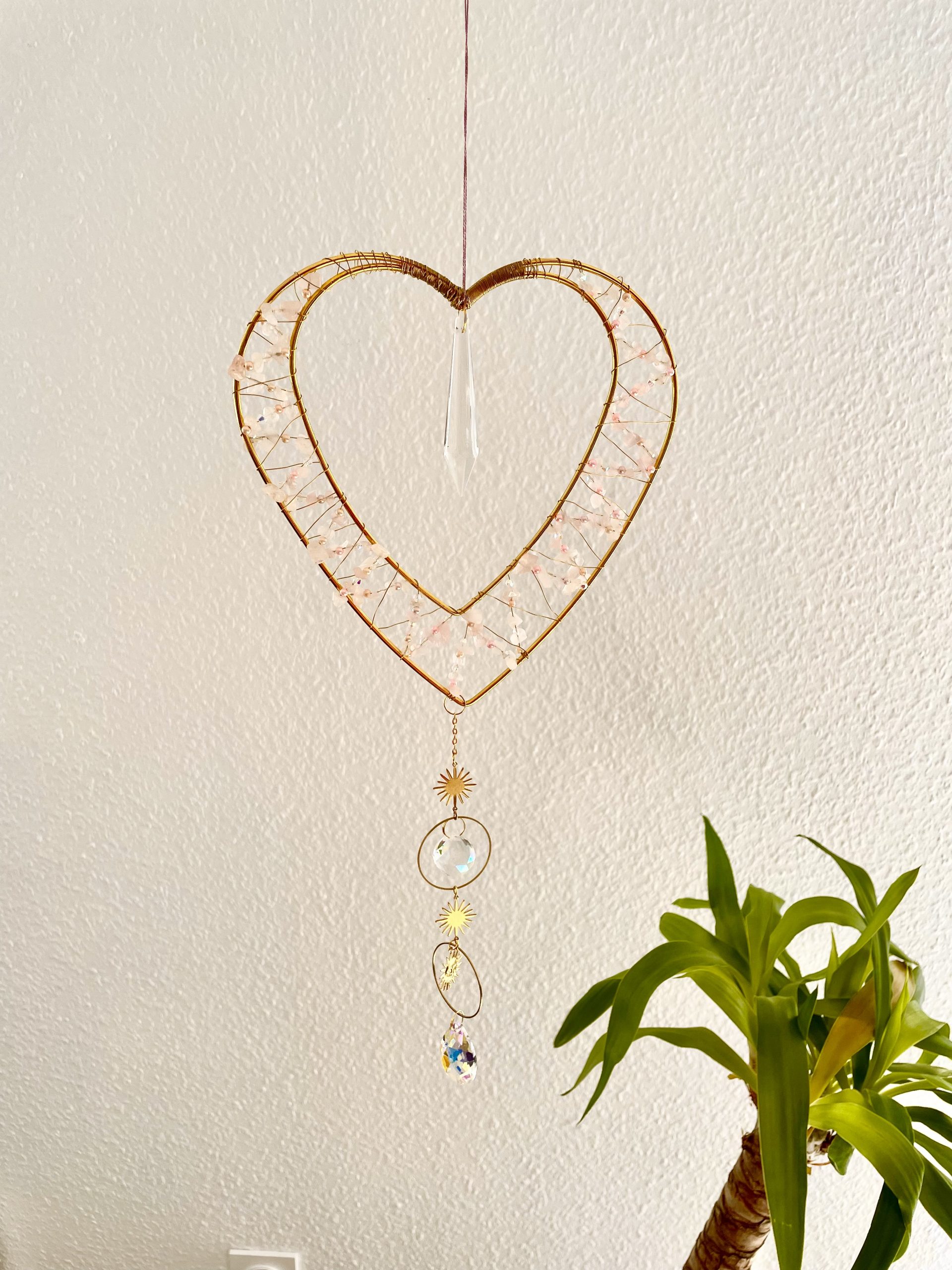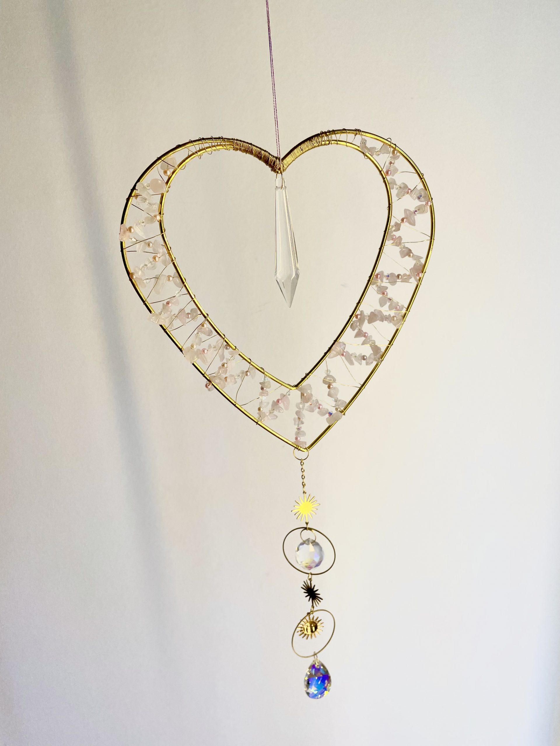 Attrape soleil coeur avec quartz rose (fait main)