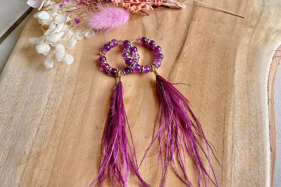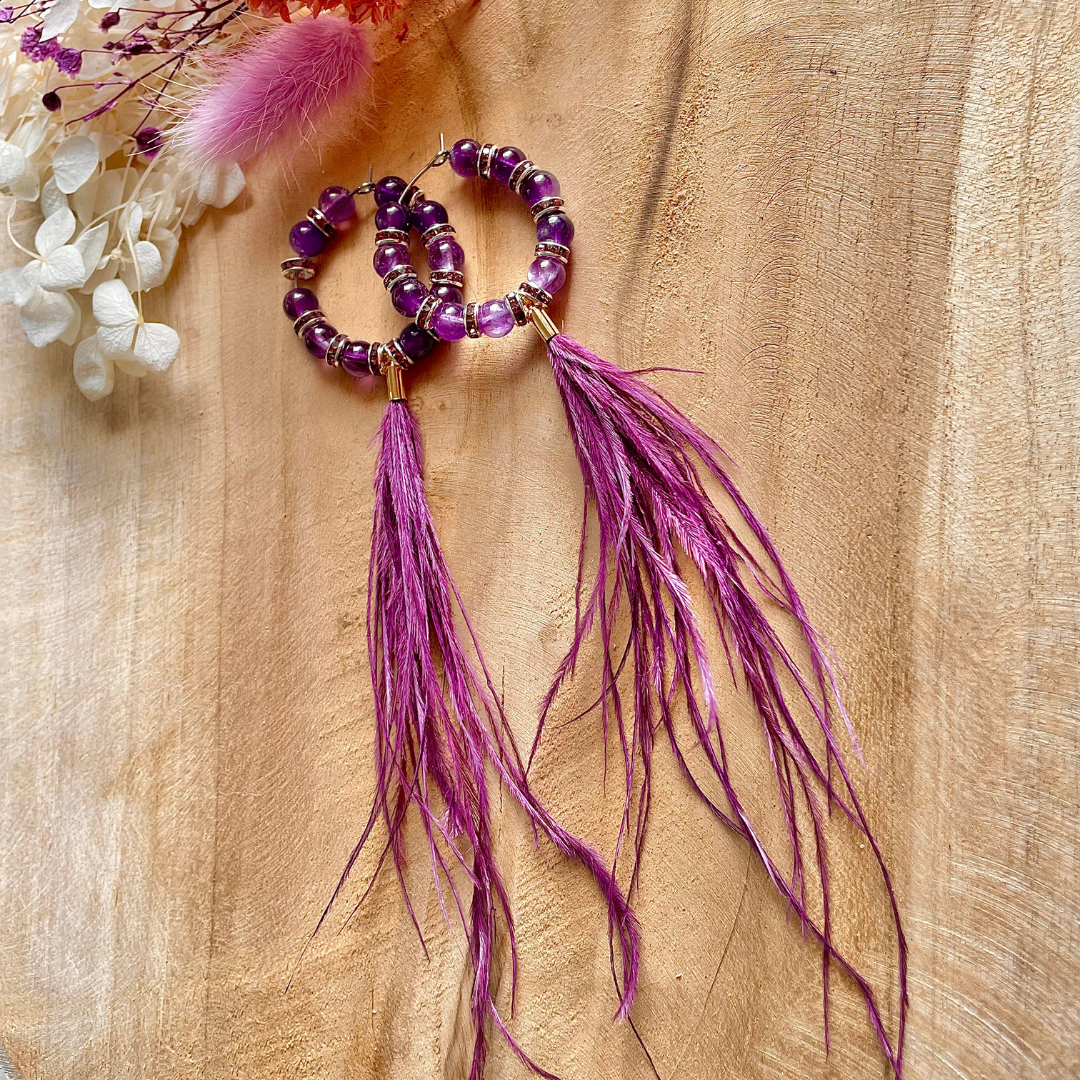 Boucles d’oreilles en améthyste plume