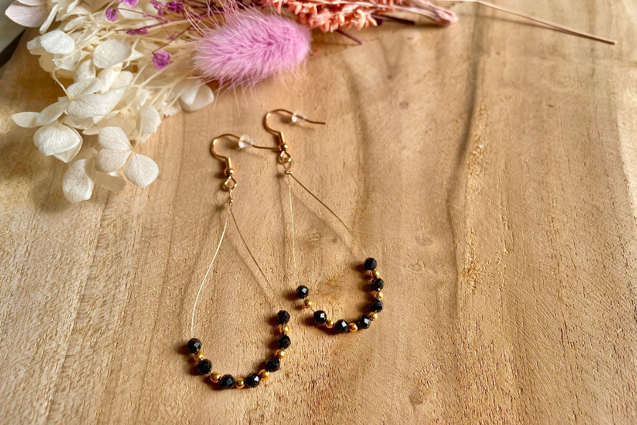 Boucles d’oreilles en spinelle noire :