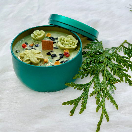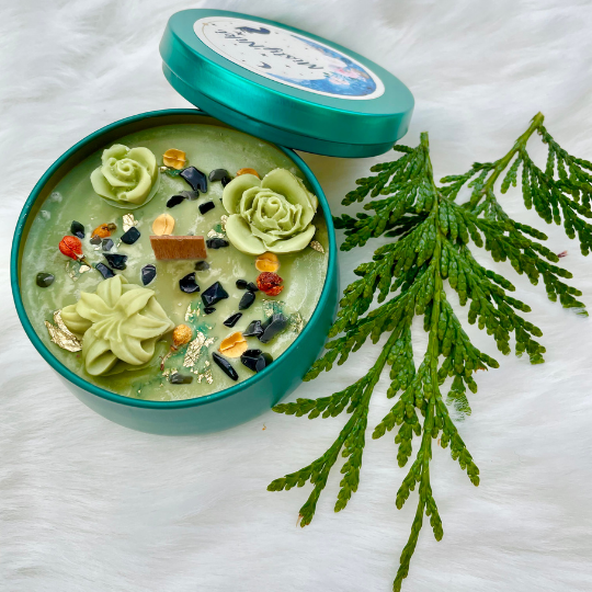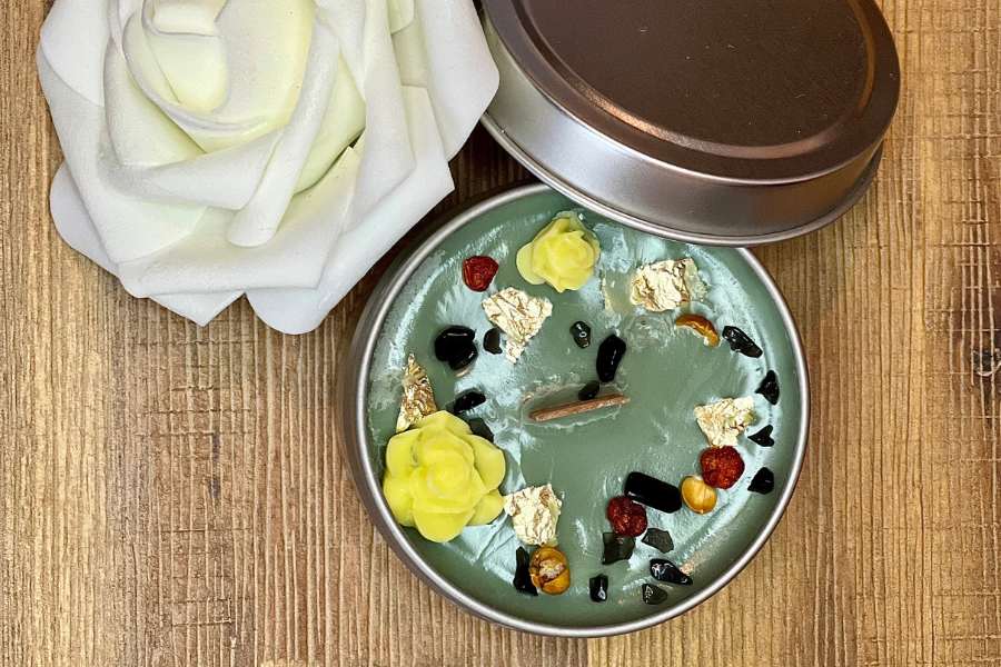 Composition : Cire de soja sans OGM, parfum de Grasse (10%), mèche en bois.