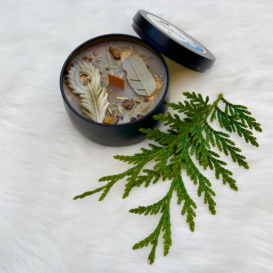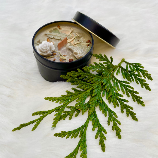Composition : Cire de soja sans OGM, parfum de Grasse (10%), mèche en bois.
