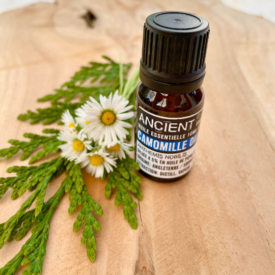 Huile essentielle Camomille Romaine (Dilué) : Agit sur les troubles du sommeil, l’insomnie, les difficultés d’endormissement, les cauchemars, l’anxiété, le stress et les tensions. Soulage en cas de choc émotionnel . Apaise les peaux sujettes aux allergies, démangeaisons, eczéma, psoriasis, acné, dermites, couperose, peau sensible enflammée, feu du rasoir. Calme les crampes intestinales et les douleurs prémenstruelles. Aide à lâcher prise, l’esprit se détache des choses, la personne a toujours conscience des évènements stressants, mais elle est moins impactée. (10ml)