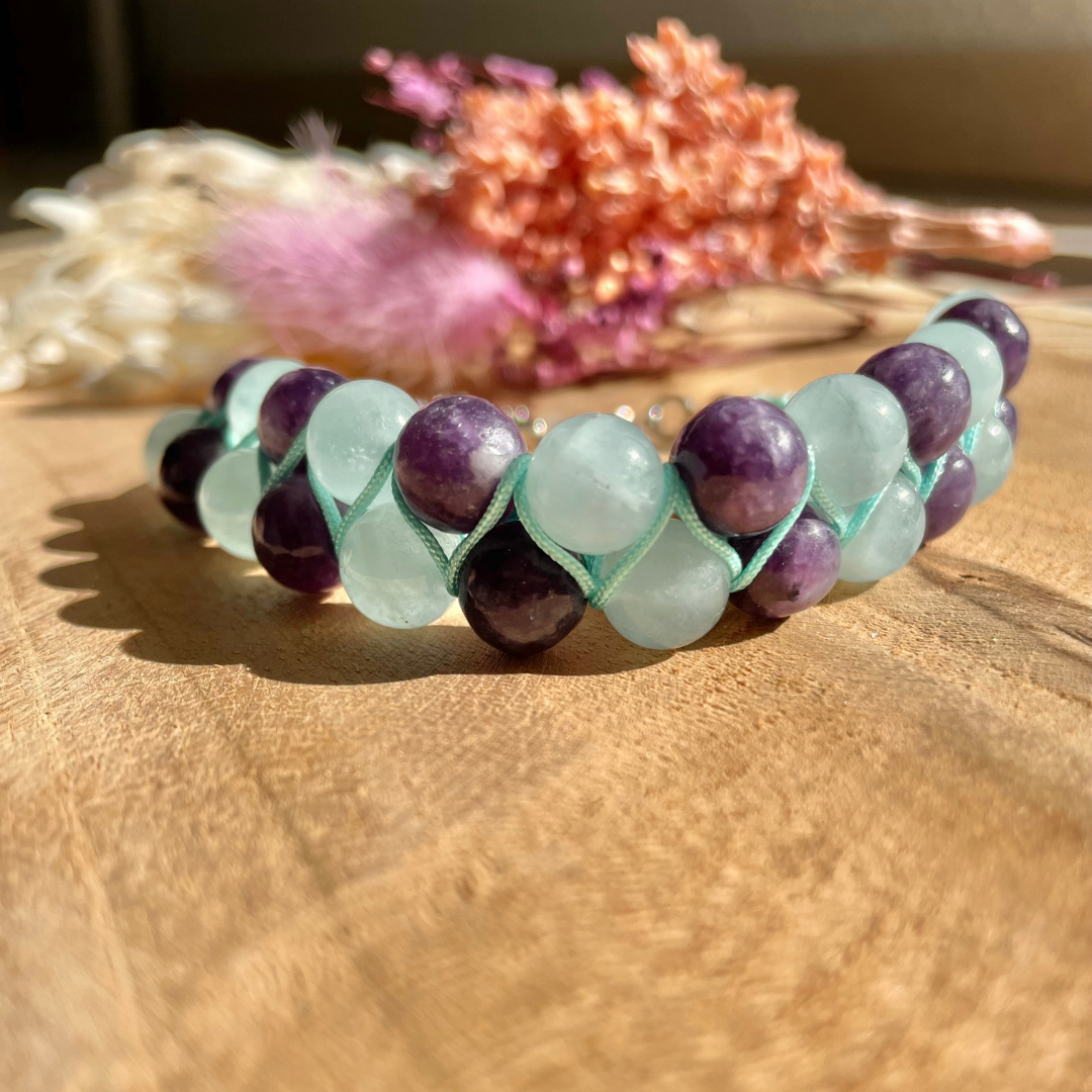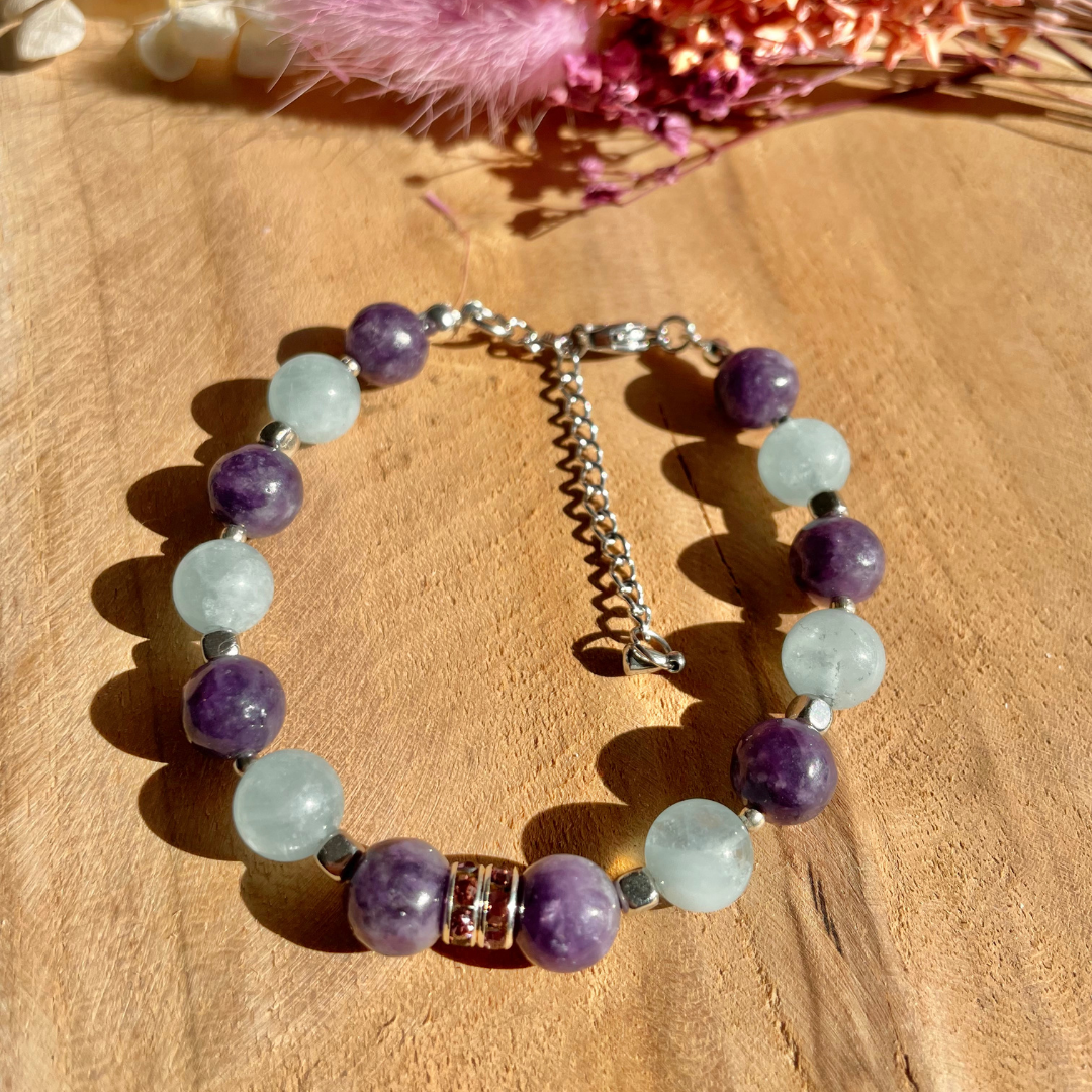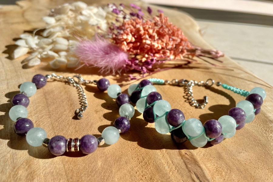 Lépidolite et aigue-marine :